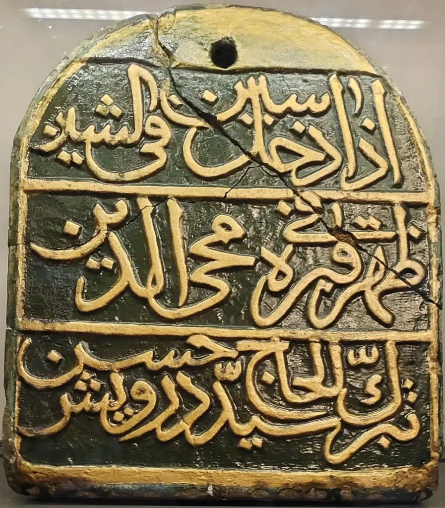 After winning the Battle of Marj Dabiq on August 24, 1516, Yavuz Sultan Selim entered the city of Aleppo and left two weeks later, reaching Damascus at the end of September. Before going to Egypt from there, he stayed in Damascus until December 15. During his stay in Damascus, he and the scholar and Anatolian Kazaskeri İbn-i Kemal Kemalpaşazade examined a statement in a book by Muhyiddin-i Arabi that said, “When you enter Sin Shin, the tomb of Mim will appear.” They concluded that “Sin” referred to Selim, “Shin” to Damascus, and “Mim” to Muhyiddin. The location of the tomb of Muhyiddin-i Arabi, where Yavuz Sultan Selim resided in Damascus, was unknown to anyone. One night, Yavuz Sultan Selim saw Muhyiddin-i Arabi in a dream and was told, “O Selim! I was waiting for you to come. Welcome. I give you the good news of your conquest of Egypt. In the morning, mount a black horse. It will bring you to me. Raise me from the earth and build me a tomb, a mosque, and an inn… Go, your work will be successful, the conquest of Egypt will be possible!” Upon waking up from this dream in the morning, Yavuz Sultan Selim immediately mounted a black horse in his service and rode in the direction it took him. The horse, carrying the sultan, went its own way and stopped to graze in a garbage dump in the Salihiye neighborhood of the city. Upon the order of Yavuz Sultan Selim, the place was cleaned and the ground began to be dug. When the ground was dug and they went down, a large stone was found. And it was written on it, “This is the tomb of Muhyiddin.” The place was cleaned and arranged, and the tomb was completely revealed. Yavuz Sultan Selim, nine months after the Battle of Ridaniya and the conquest of Egypt on January 22, 1517, came to Damascus again in October and resided there for more than four months, building a tomb over the tomb of Muhyiddin-i Arabi, and a mosque and inn adjacent to it. The complex was opened with the first Friday prayer on February 5, 1518. To commemorate the incident that led to the discovery of the tomb of Muhyiddin-i Arabi, Seyyid Derviş Hasan had a stone inscribed with the words “Iza dahela sini fi shin, zahera fikabrihi Muhiddin” written on it and placed in the sultan’s tomb after his death. This stone within the display case is the stone in question. It is known as the Sin Shin Stone.