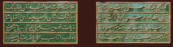 “Hilafet makamında olan dünyanın bekçisi Sultan Abdülmecit Han’ın, şevket ve şâna izzet katan kumandanı Rıza Paşa. Bursa’yı ziyaret niyetiyle şereflendirince tüm velilerin,Allah dostlarının baştan sona makamlarını ziyaret ederek alnını aşındırdı, yüzünü sürdü.”