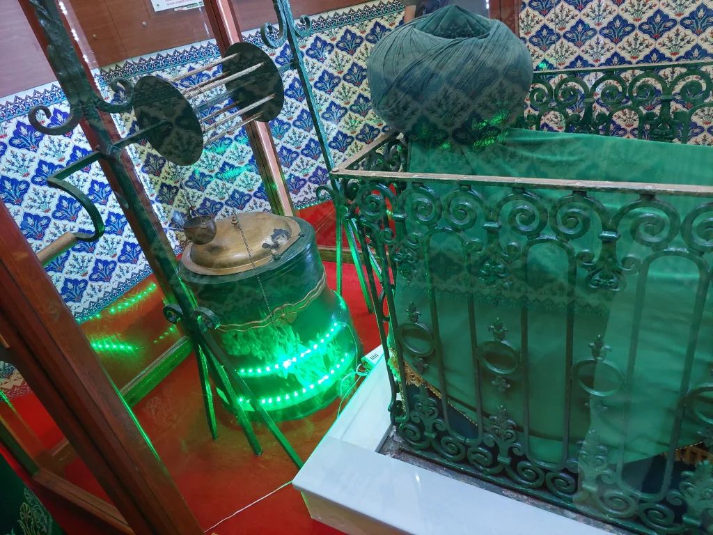 Kabir, türbenin tam ortasında demir parmaklıklarla çevrili sanduka içinde yer almaktadır. baş tarafında bir kuyu vardır.