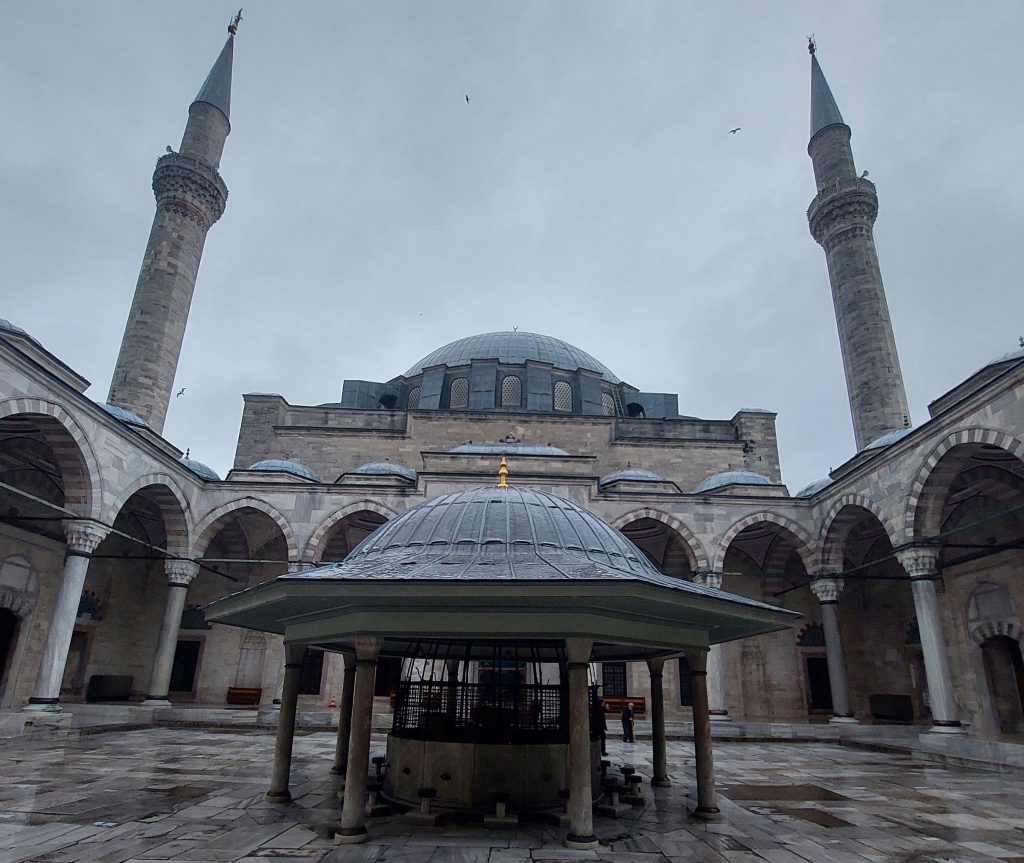 Kesme taştan inşa edilen kare planlı sade görünüşlü eseri, tek büyük kubbe örtmektedir. Câmiye bitişik tabhåne odaları Osmanlı erken devir mimarisinden klasik devire geçişin işaretidir. Mihrab tarafındaki türbeler arasında Yavuz Sultan Selim ve Sultan Abdülmecid türbeleri mevcuttur.